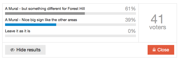I interpret the results as 39% of voters supporting the “vintage railway style” mural for Forest Hill: