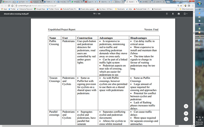 of installing the various crossing types. Pelican, Puffin, and Zebra crossing installations were quoted