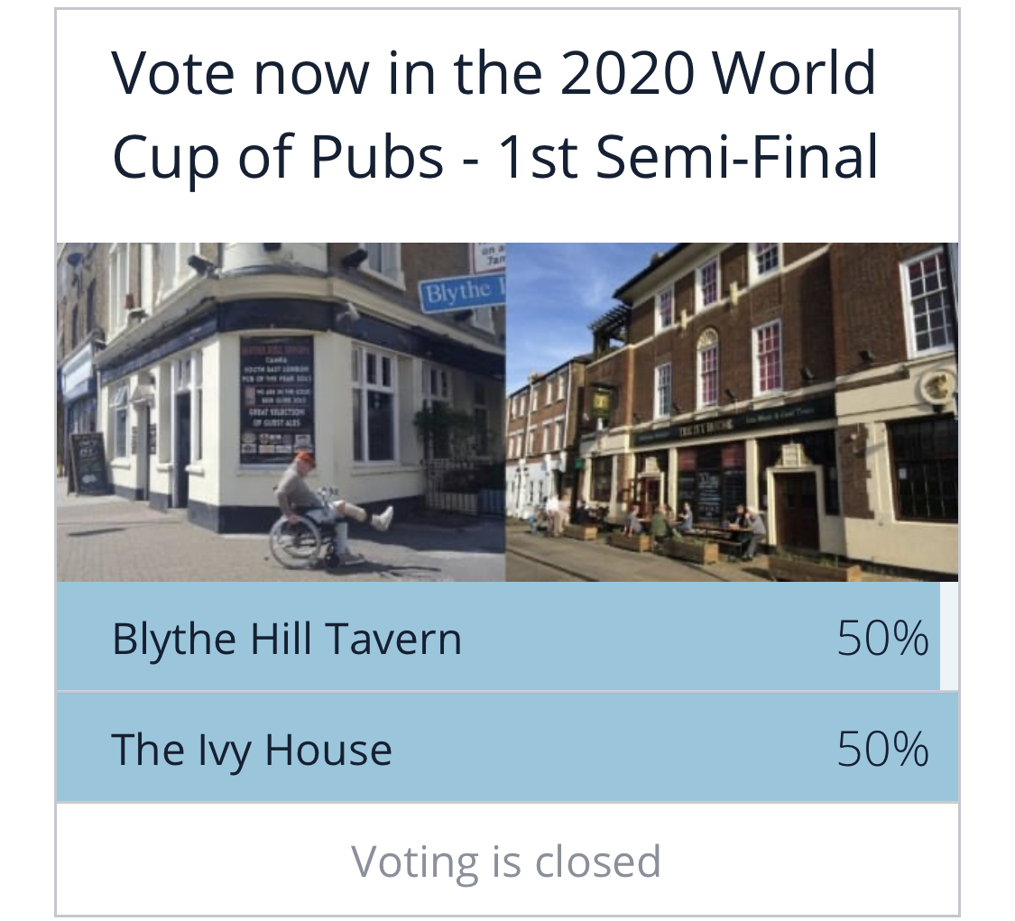 One of SE23’s top pubs, the Blythe Hill Tavern, is in the semi-final of the Deserter World Cup of Pubs - voting is online and closes at 1pm today! It’s SE23’s only finalist and it would be great to see them in the final again this weekend, defending the title they won in the last World Cup!
