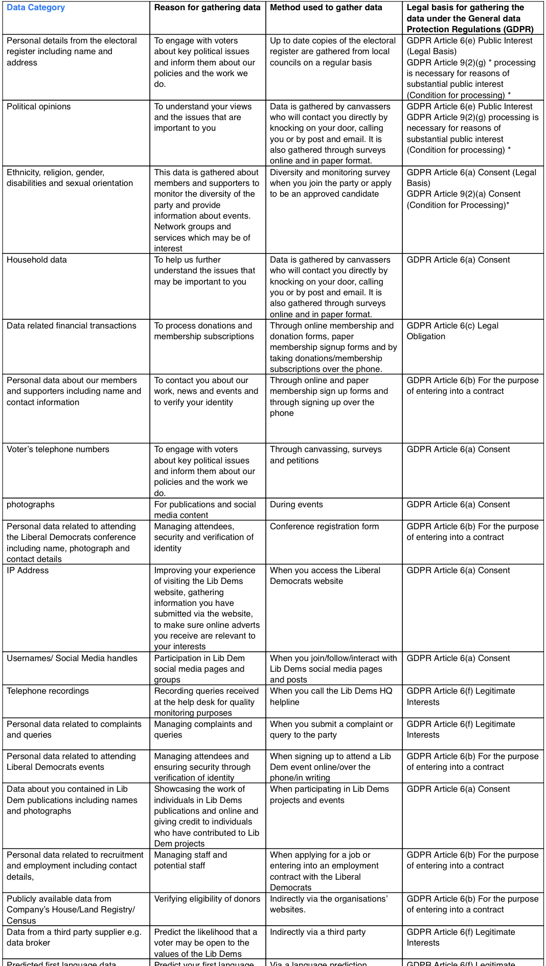 I sent a FOI request to the Lib Dems and found out they do a LOT of data mining to work out my political leanings and my personal information.