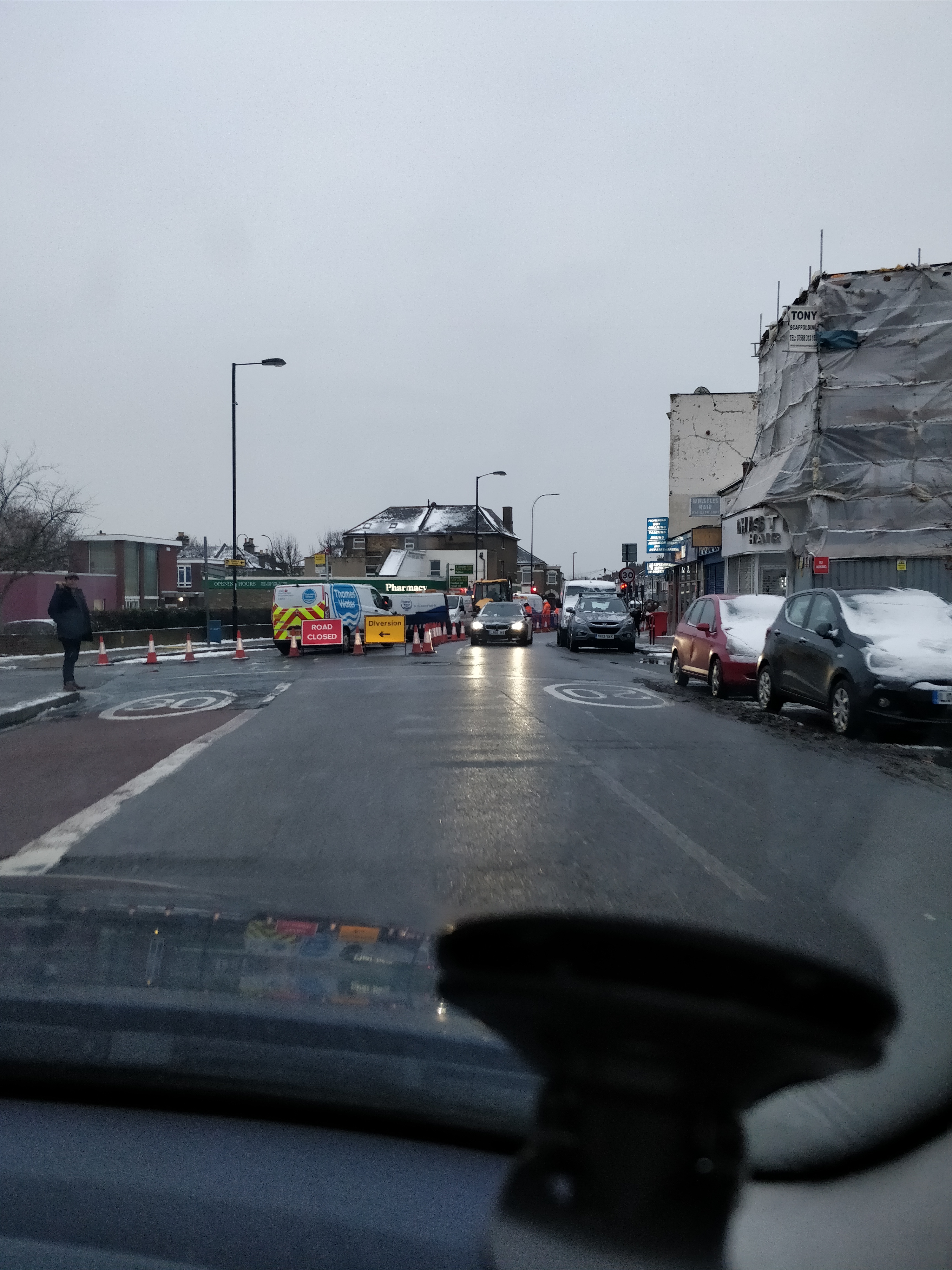 The diversion signs and barriers were back up at 10am but a lot of people seemed to be ignoring them and just creating a contraflow.