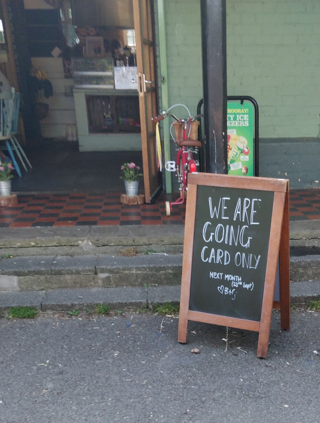 From 23rd September, it looks like Brown and Green in Mayow park is following the trend and going cashless too: