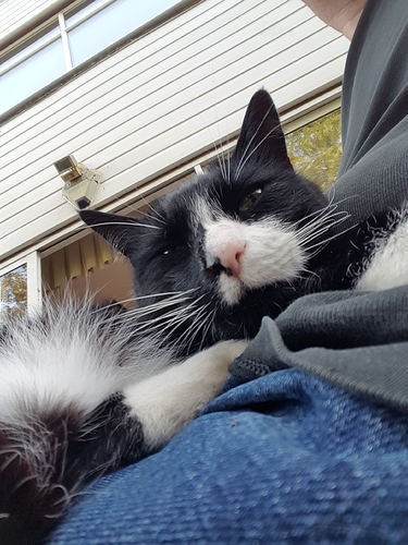 Yes he is mine - sort of as he goes go awol for days at a time and comes back smelling of lavender. I think some elderly lady has been cuddling him! I really don’t know how he wins any scraps as he has lost his teeth but he never backs down. Sadly this does result in visits to the vet and he is always covered in minor scabs. Amazingly he get on ok with our other two.