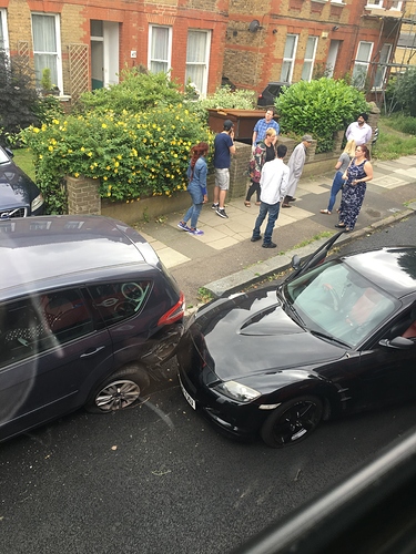 Yet another example of wreckless speeding down Woolstone Road, the guy in the black car is lucky he only hit a parked car and not one of the many people doing the school run at that time. We were very lucky in that we were parked in front of the hit car until an hour before the crash - he hit it with such force it shunted the car you can see there into another parked car in front. What is wrong with these people!!