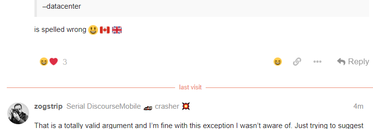 When opening a topic you have already started reading, Discourse will automatically load the topic at the first unread post so you can keep reading. Now, Discourse also displays an indicator of where your last visit was, so you can safely scroll up or down without losing your place.