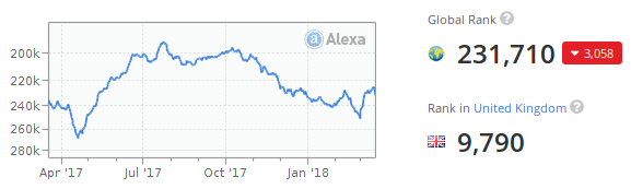 Alexa measures the popularity of websites and compares them to similar web sites.