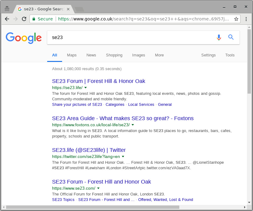 If you search for “SE23” in Google and scroll down past the #1 spot, you’ll see our competition