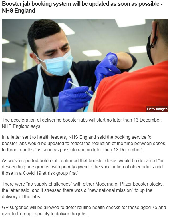 From this article on BBC News website this afternoon it looks like you should be able to book your booster by the 13th December: