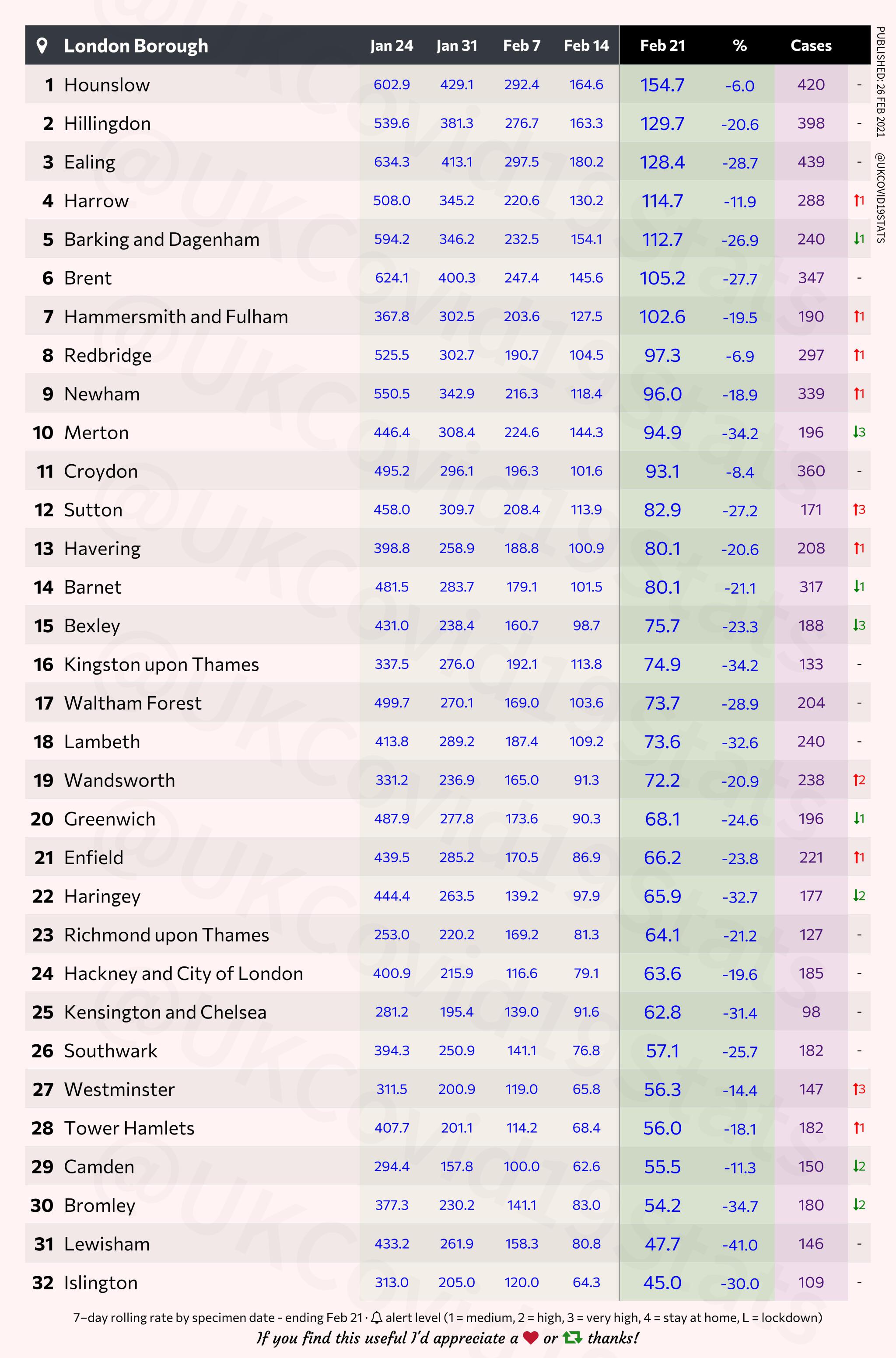 We’re still ‘winning’ at bottom of the ‘leaderboard’ too, though most \ all boroughs are doing well: