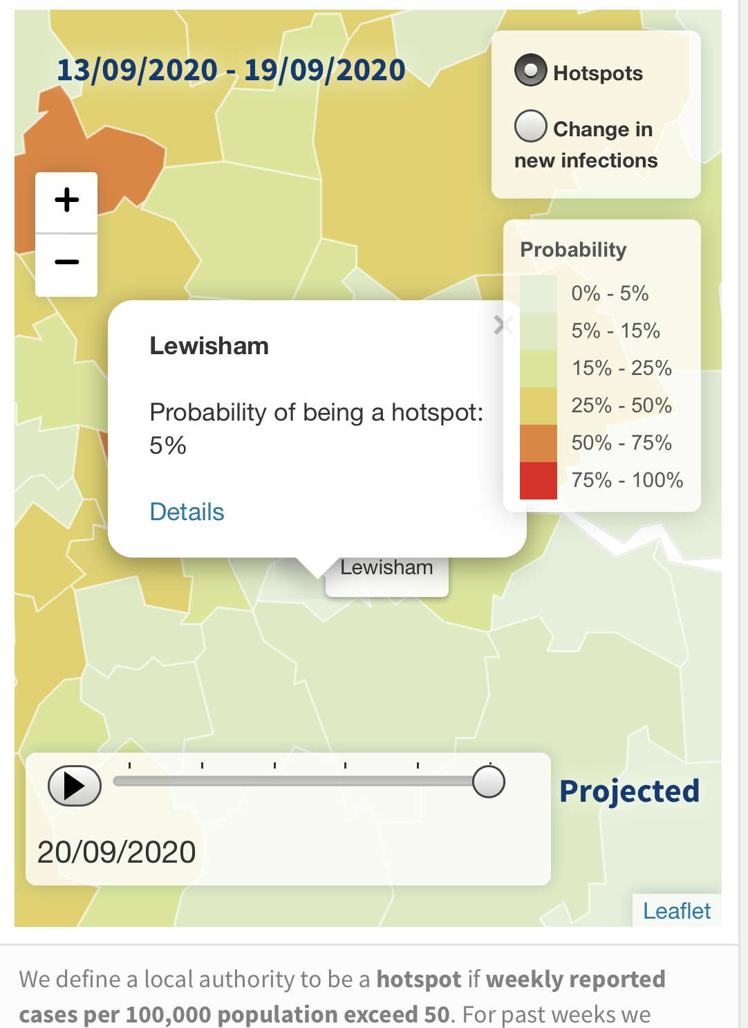 Lewisham predicted quite favourably by Imperial College’s Covid Hotspot Calculator: