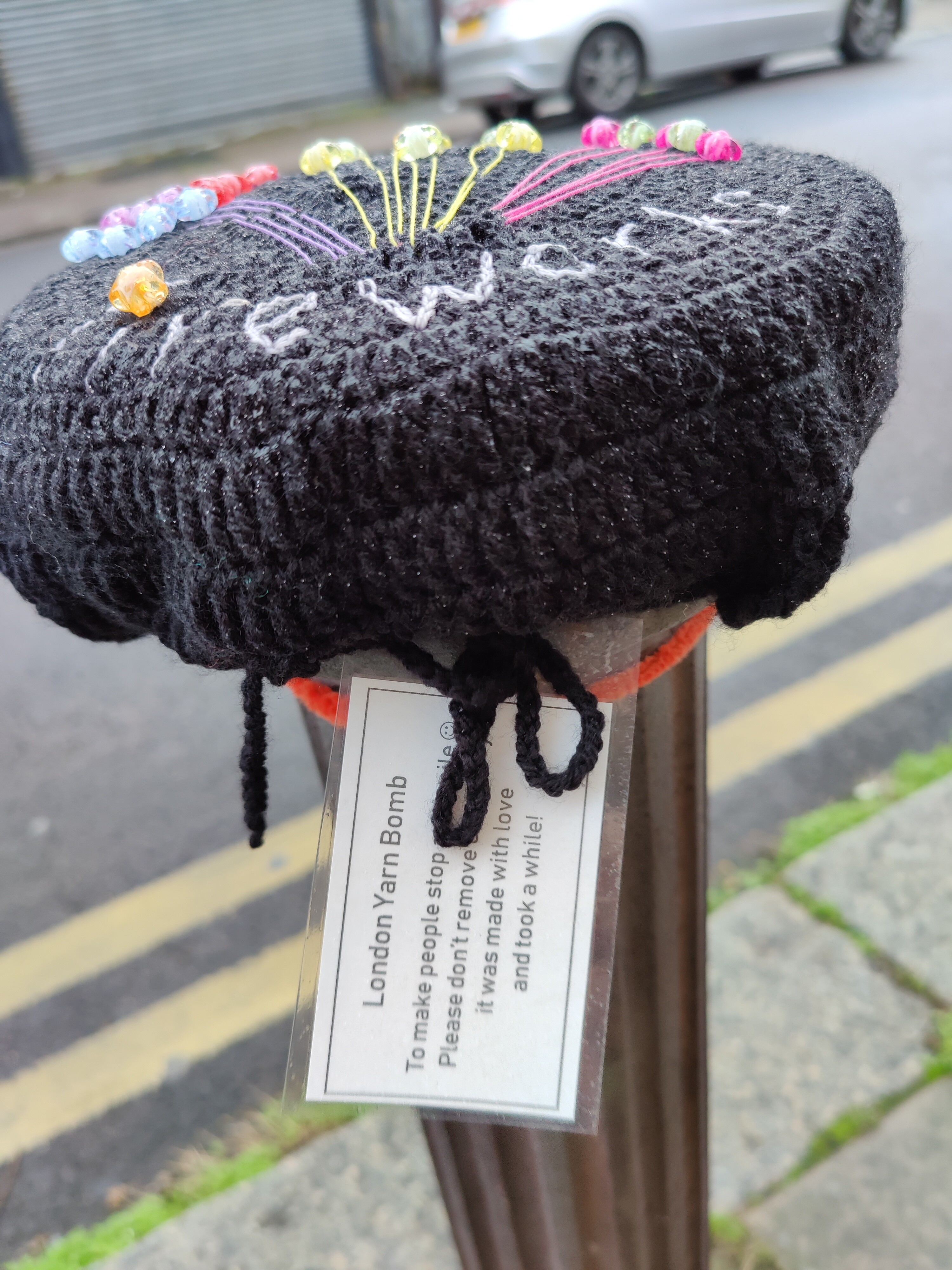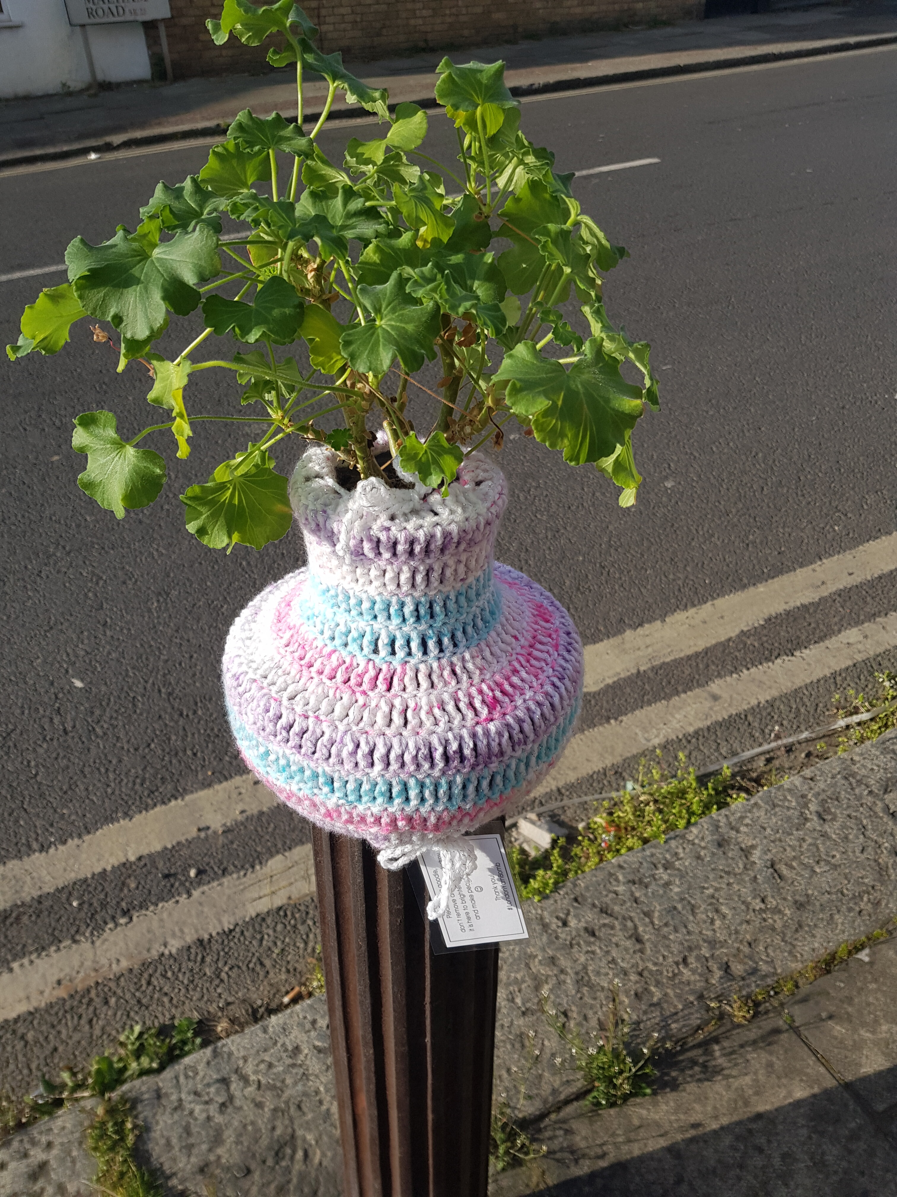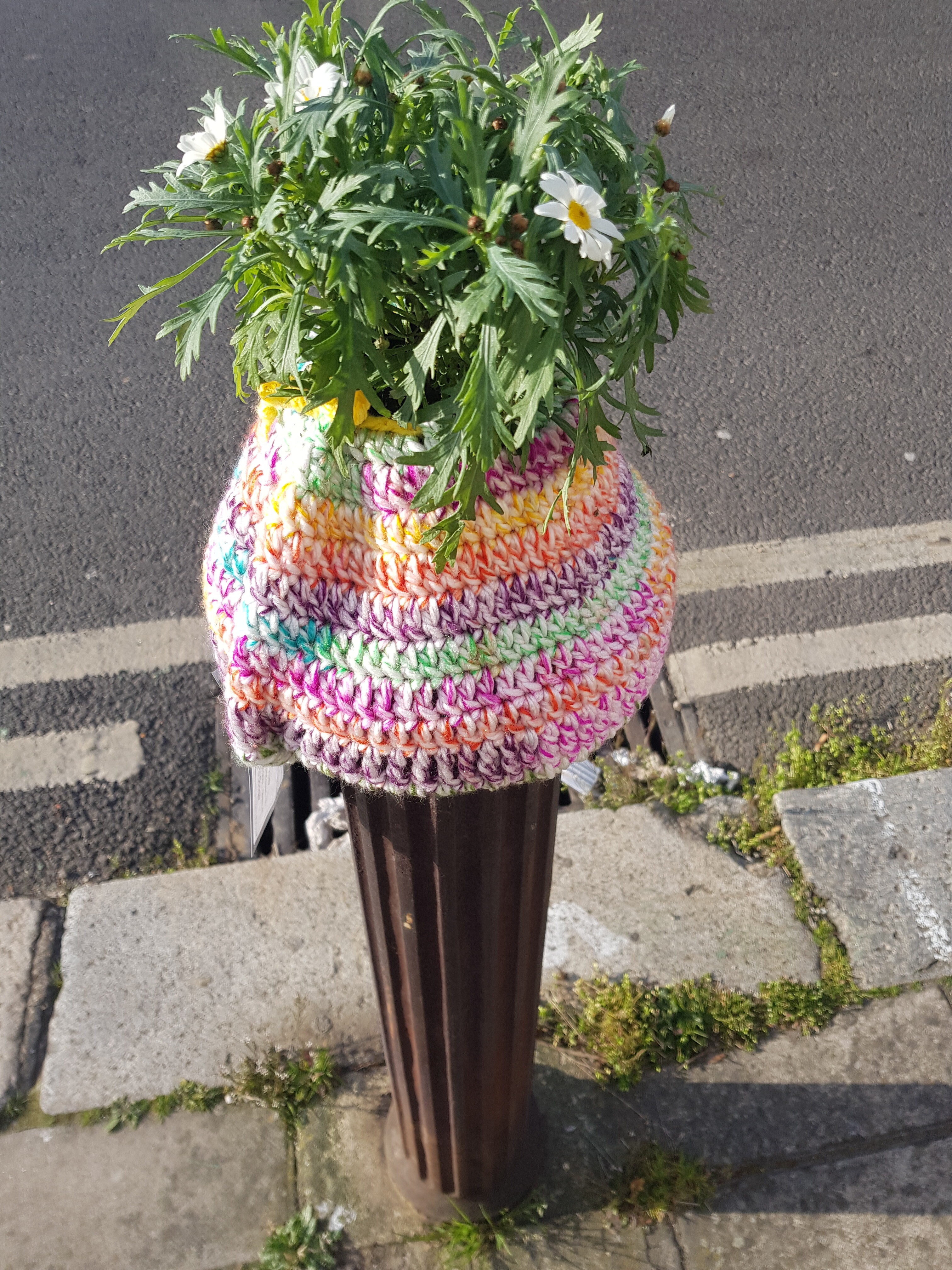Does anyone have the contact details of the person doing the crochet? Or shall I put a note through the front door of the house with the distinctive front garden, and hope it’s the right address?!