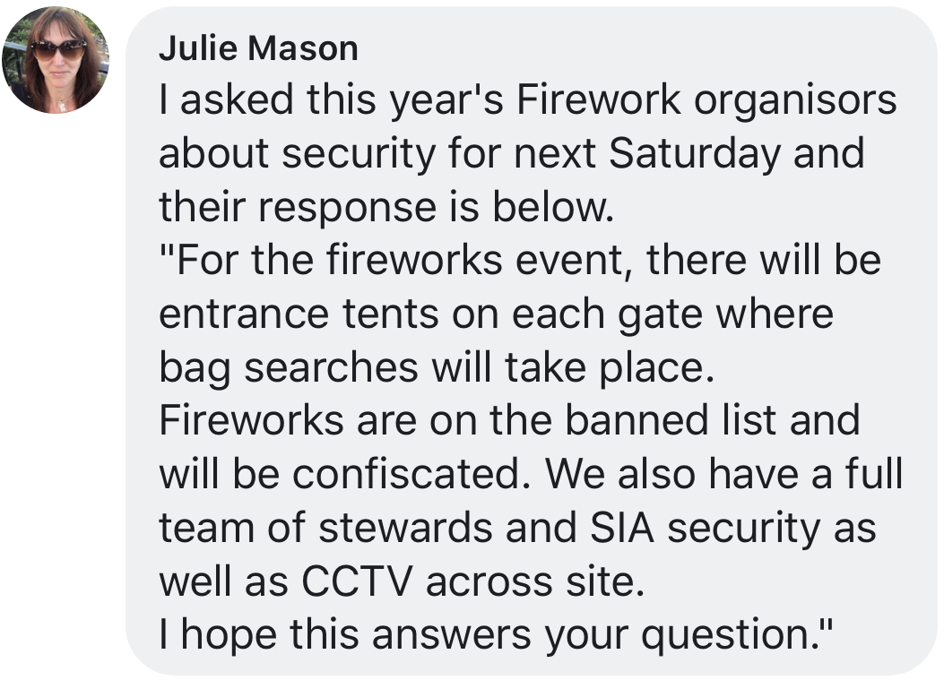 St Christophers Hospice are also in partnership of the event looking at their website. Went to the fireworks in previous years and St Christophers just had a couple of buckets for collections. Looks like poor form for them to mislead people to say there’s no fireworks or that charities are being let down when there looks to be more support this year for charitable causes.