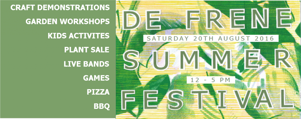 To find out more, including directions and a map to the De Frene site go to: http://www.sydenhamgarden.org.uk/event/de-frene-summer-festival