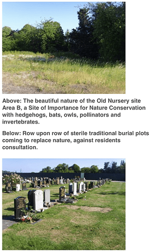 Went earlier to this consultation. Once again, no councillors were present, so no opportunity to actually get any answers really. In response to ‘why are they proceeding with this plan for area B before the burial strategy review in the new year has even started?’, the poor council employee could only reply with: they have to get on with the old strategy before any new strategy is decided.