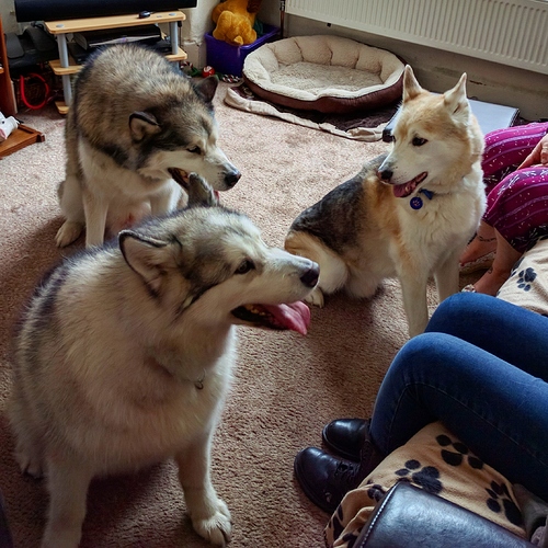 So thanks to this forum and thread Tuvaaq and Aana have made a lovely new friend thanks to @anon65350507 and the incredibly awesome and tolerant Bailey.
