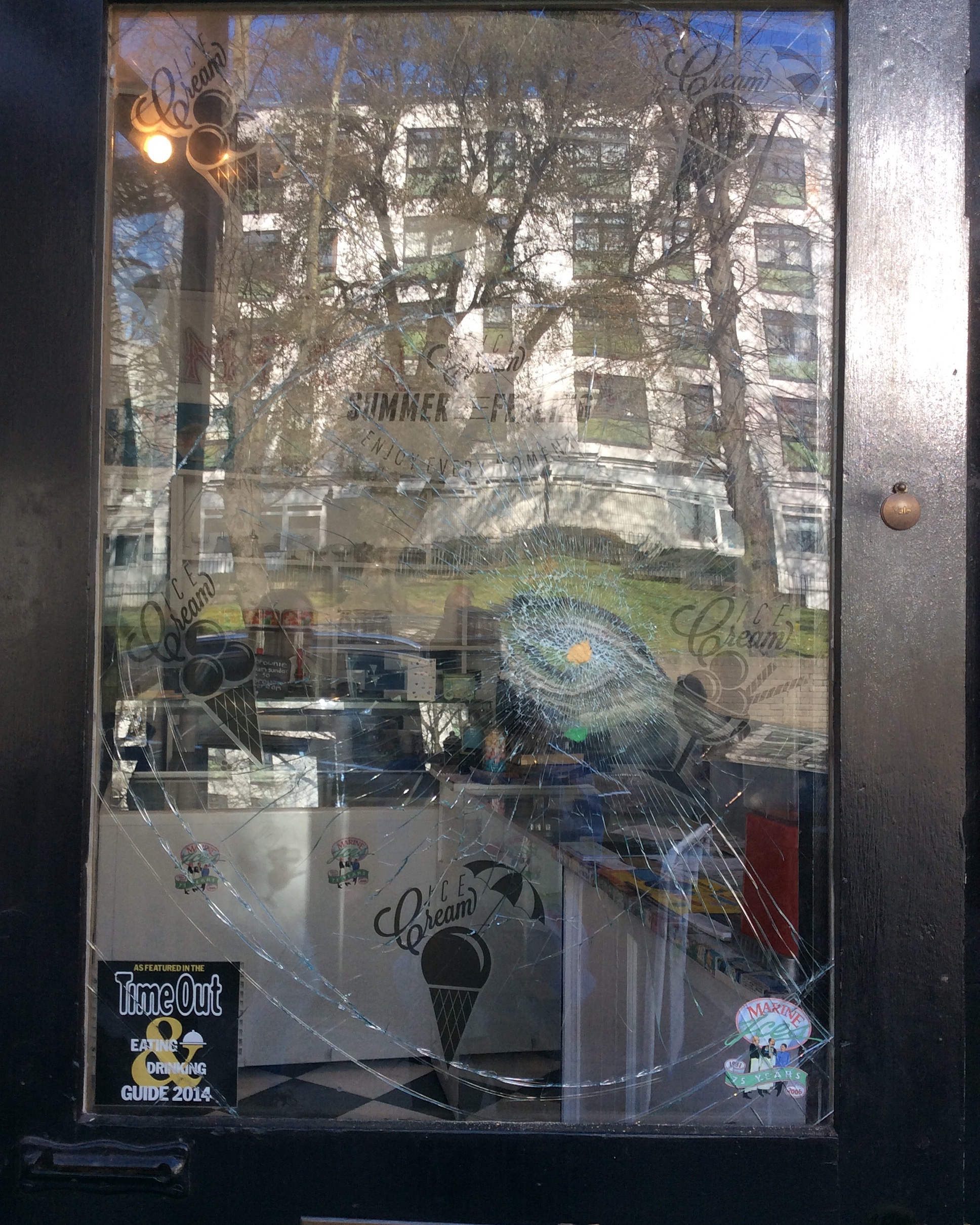 Further discussion on local forum Donde & Honor Oak Cafe Windows Bricked and if you have any information about these break ins please contact the police.