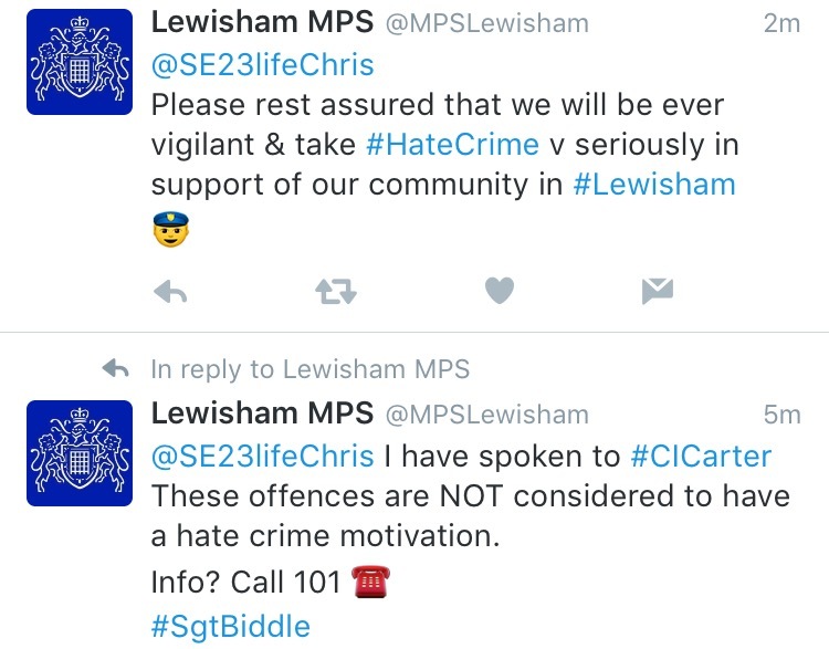 @MPSLewisham 15 hours ago @SE23lifeChris they are being investigated. As far as I’m aware there is nothing to suggest a more sinister motive than theft.