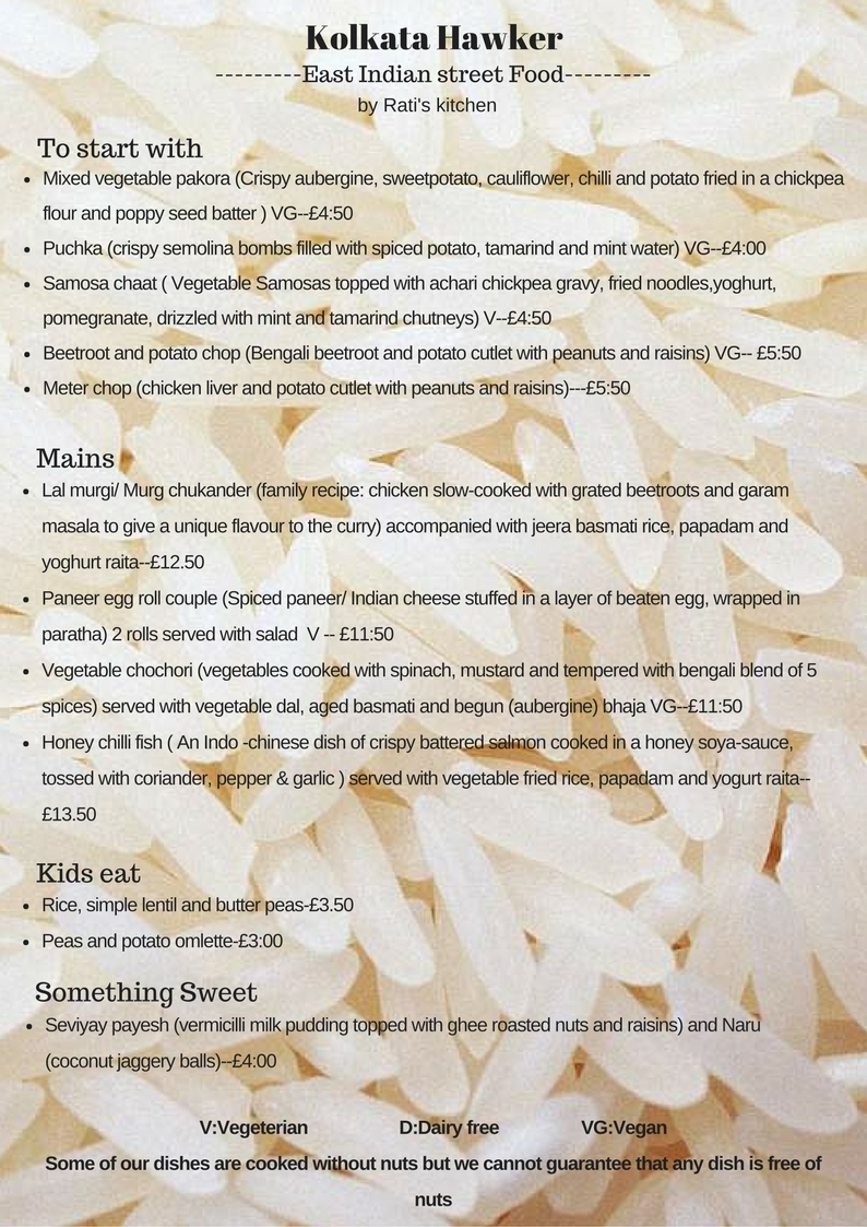 I am really excited to announce the residency of Rati’s Kitchen at @AllInnOne for March. I am a Sydenham local and started my small Indo-Bengali food stall at the monthly Sydenham market. My first pop up residency was at Beer Rebellion, Sydenham which was an amazing experience. Thanks to the support of the awesome Sydenham and Forest Hill crowd, I am now doing my pop-up kitchen at All Inn One and have put together a menu that brings to life a foodie road trip from my hometown Cooch-behar to Kolkata, India.