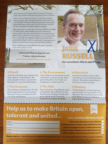 We’ve had a leaflet from Labour’s Ellie Reeves today which has no mention of Brexit and no mention of any specific policies whatsoever. Same for her website, but she may not have had time to get that organized?
