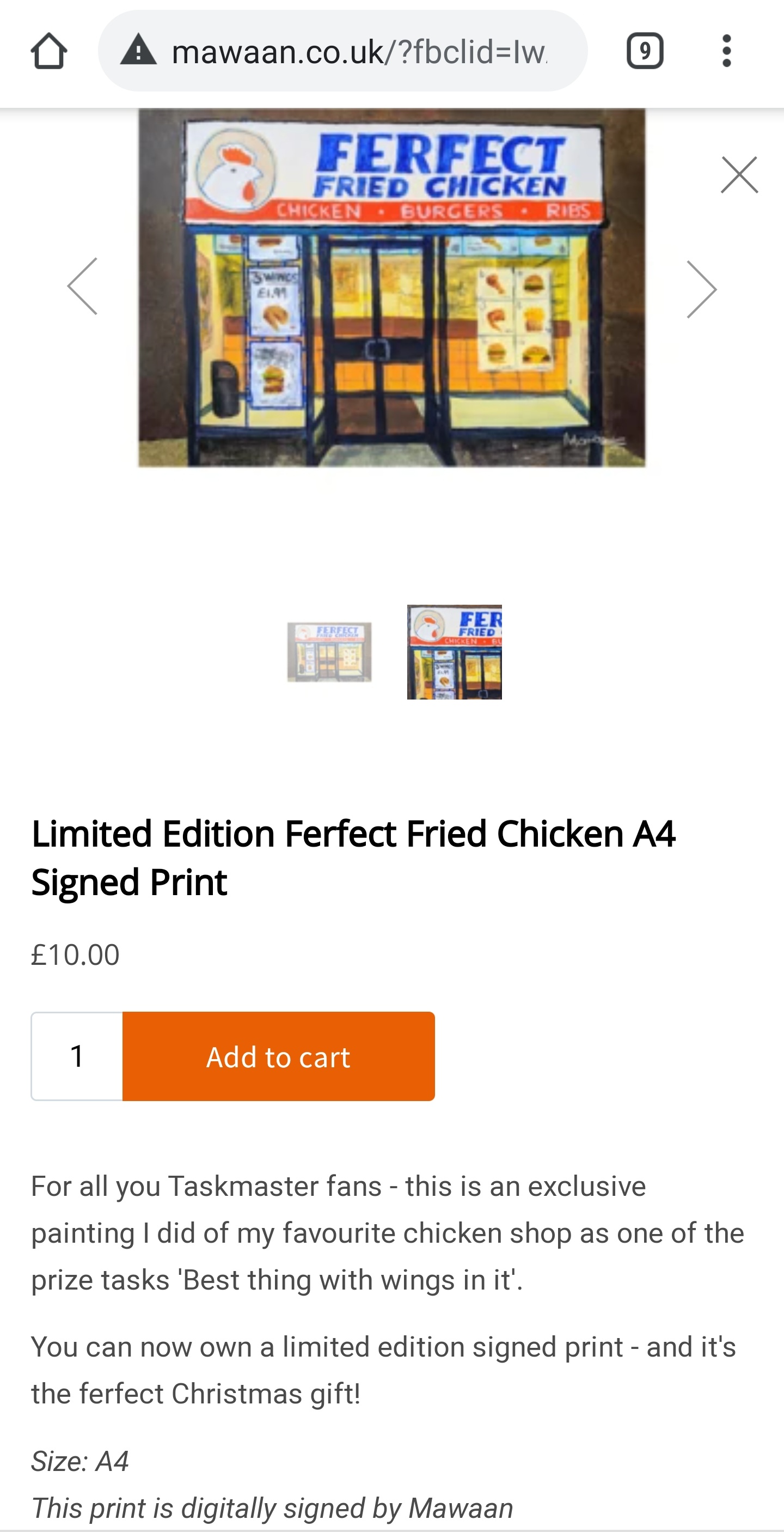 I was watching TaskMaster on C4, series 10 episode 8, around the 4min 30 sec mark - Mawaan Rizwan gives Ferfect Fried Chicken a shout out, well more than a shout out - pretty sure it’s our Forest Hill one, right?