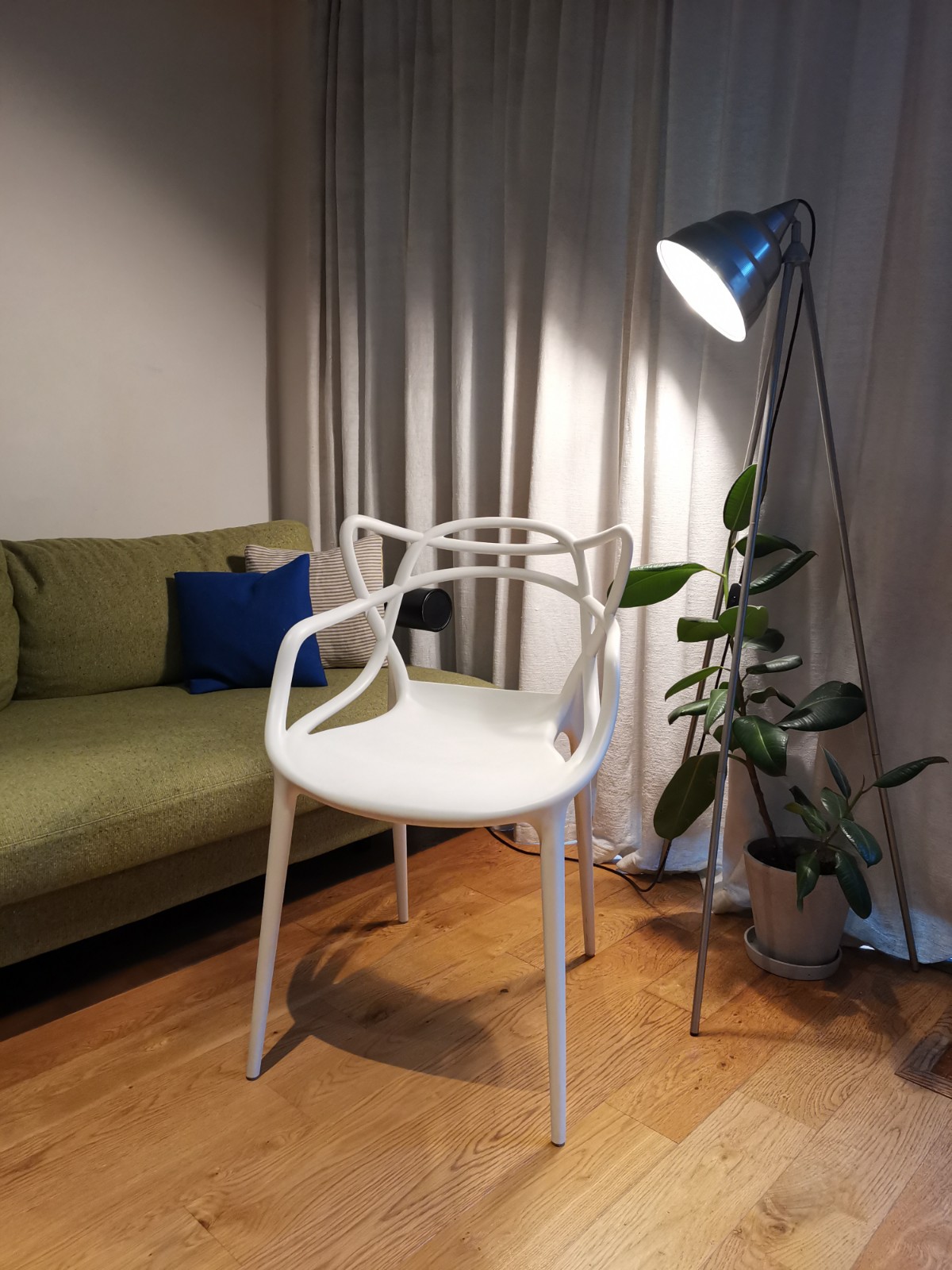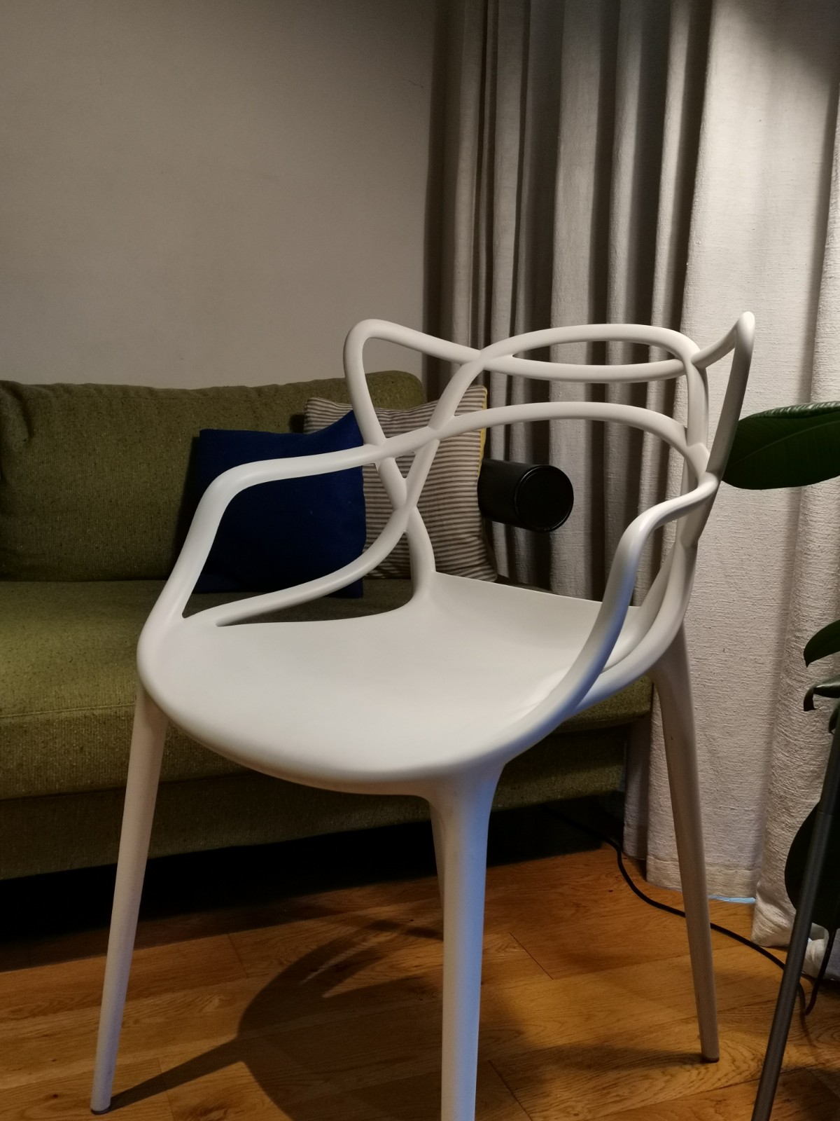 Designed by Philippe Starck as a tribute to earlier masters of chair design: the three looping curves reference silhouettes of classic chairs by Eames, Saarinen and Jacobsen.