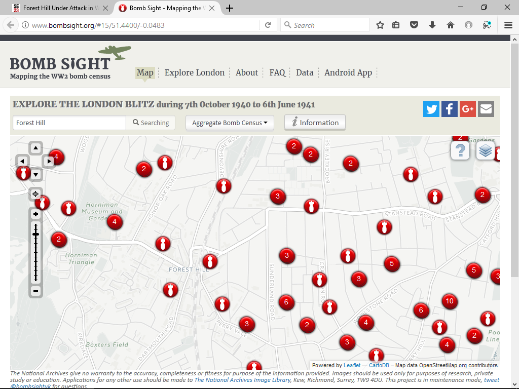 Just in case youâre not aware of it, www.bombsight.org is an excellent resource for checking out what sort of ordnamce landed where during the Blitz⌠hereâs a snapshot of the FH area