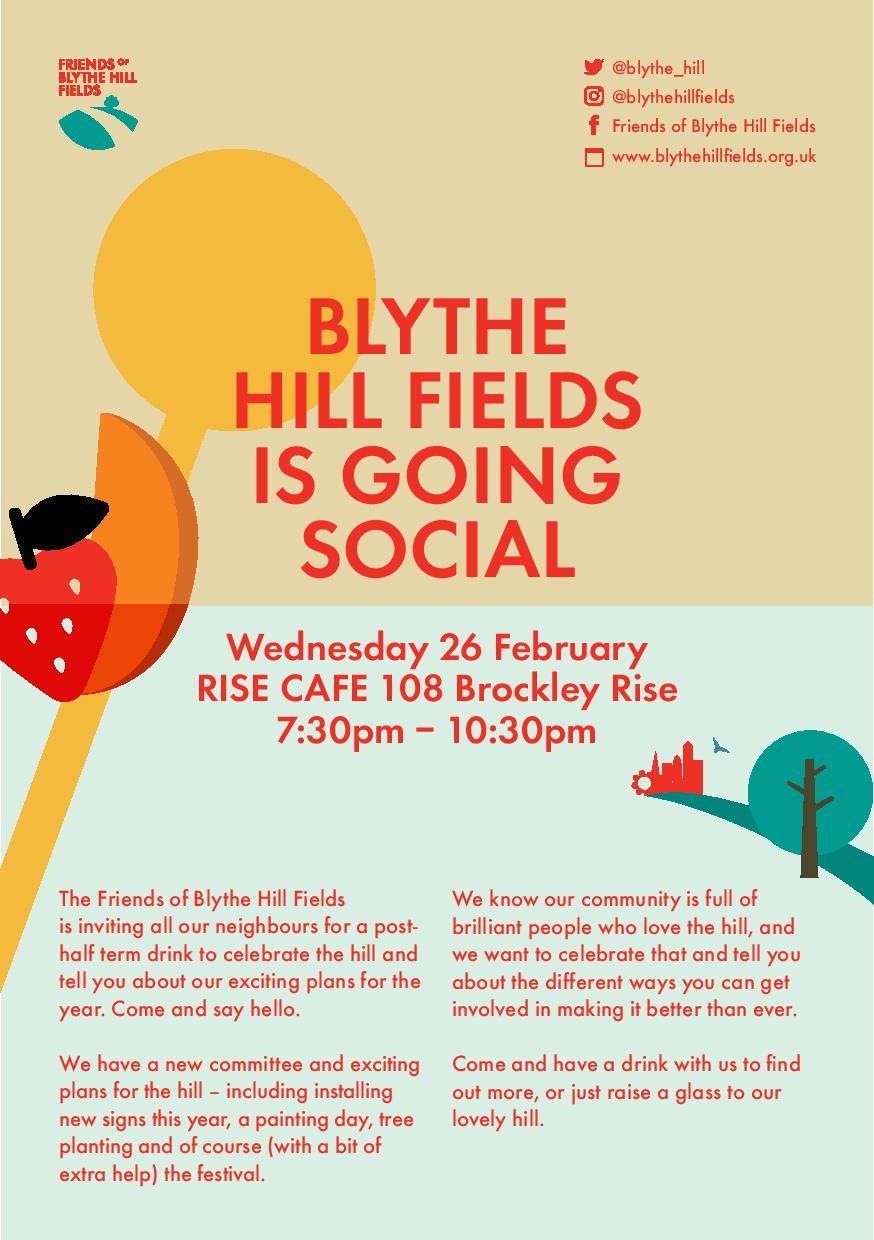 Please come and join the Friends of Blythe Hill fields for a drink on Wednesday evening. We will be unveiling our new strategy and activities for the year.