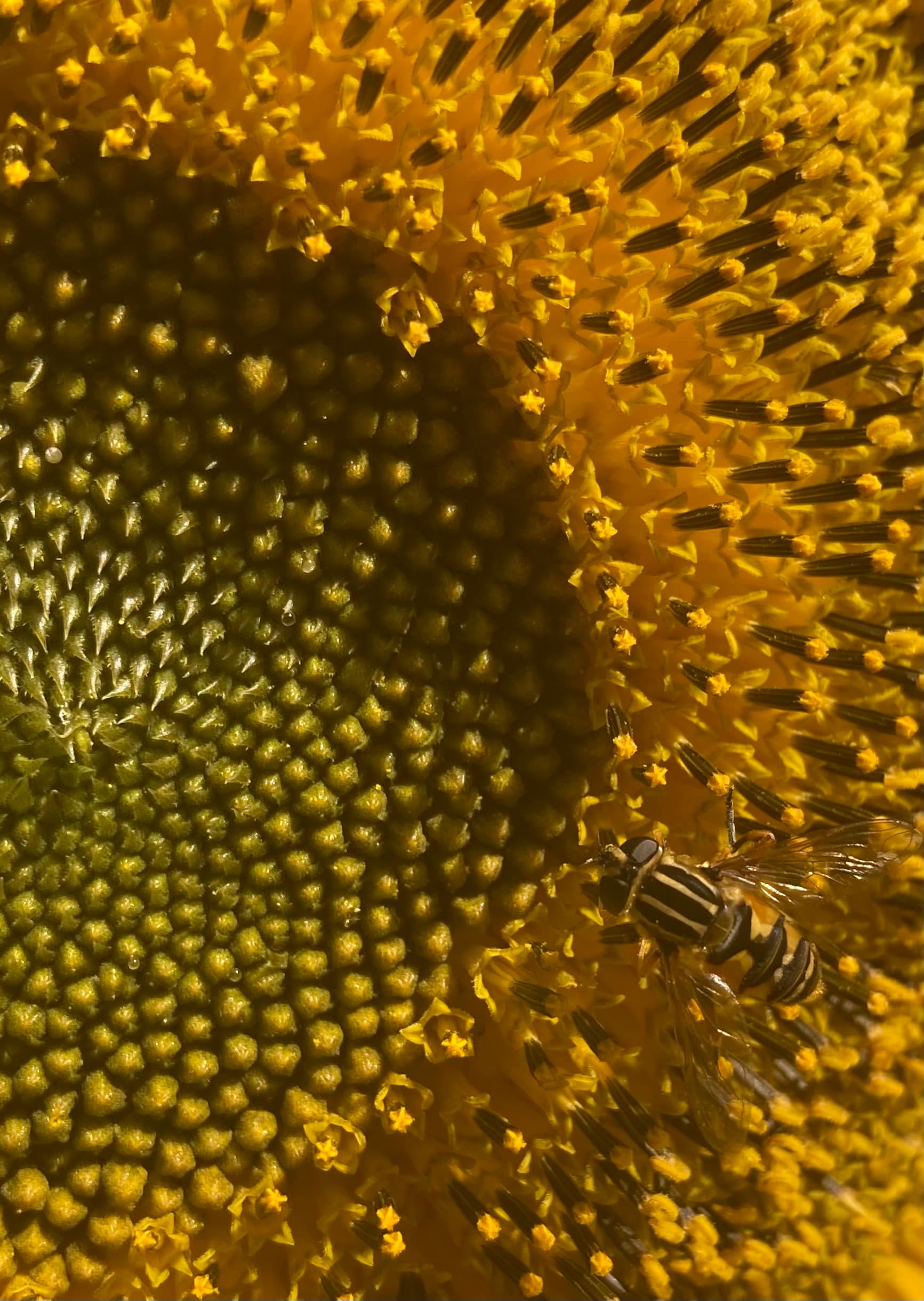 Lovely photo, the bee (is it a bee?) looks almost camouflaged!