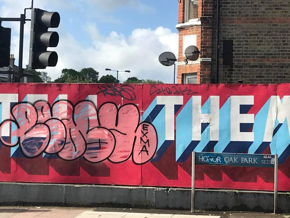 I noticed this morning that the ‘Love Them? Tell them’ mural at the corner of Honor Oak Park and Stondon Park Road has been ruined on one side with a large tag. Any ideas who to contact to get it removed and re-done?