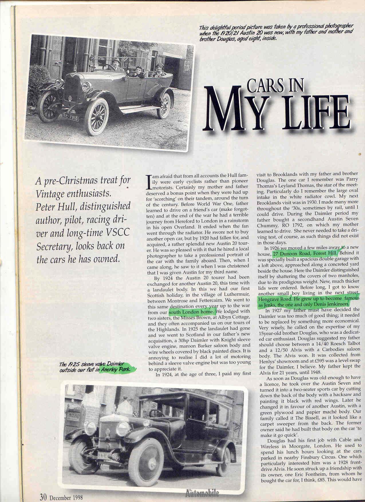Denis Jenkinson, the famous “Jenks” lived as a boy in Hengrave Road, see attachments