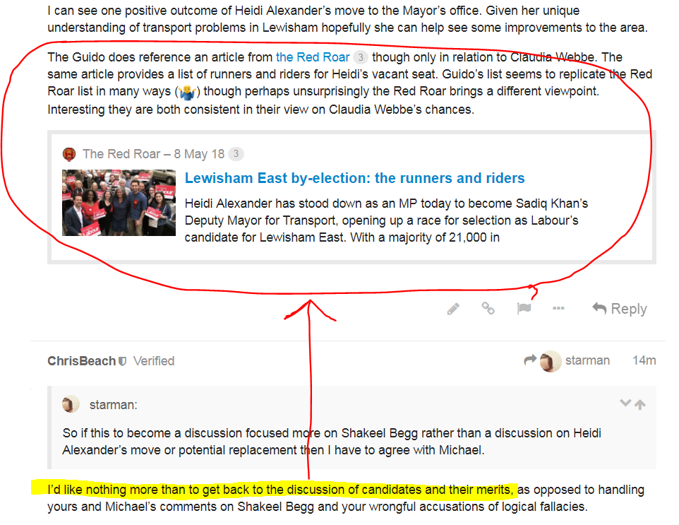Yes they are. And I think Iâve seen a third gambit in play - Ignoratio Elenchi. So if this to become a discussion focused more on Shakeel Begg rather than a discussion on Heidi Alexanderâs move or potential replacement then I have to agree with Michael. Iâm not in mind to participate in a do-over.