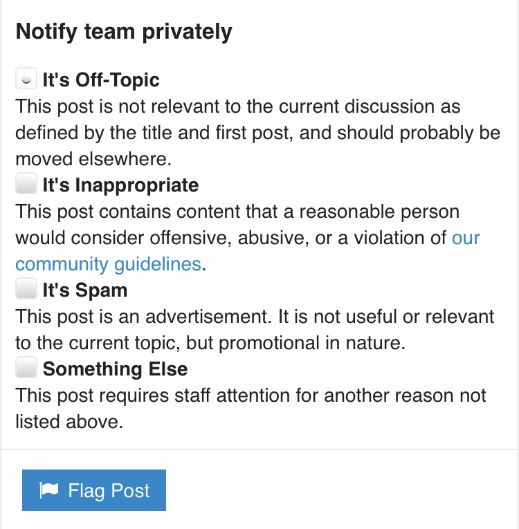 - Flag it for attention. If other members agree with you, the post will be automatically collapsed.