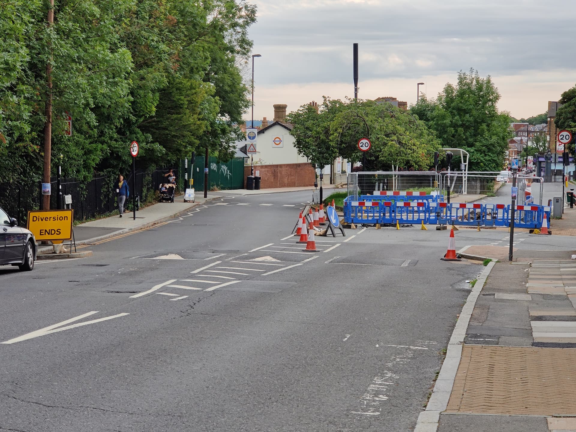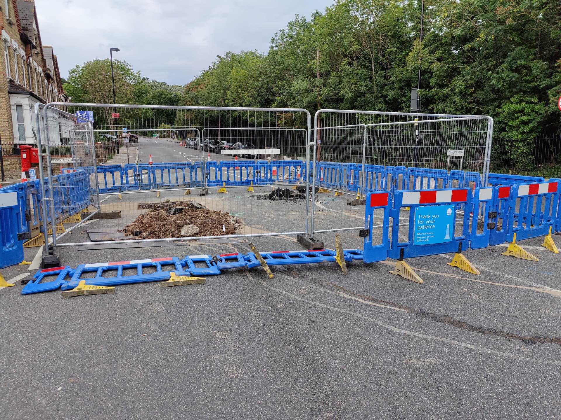 Honor Oak Park is closed at the Devonshire Road junction with a contra-flow in place. It looks like the water people are hard at work fixing another natural spring or something: