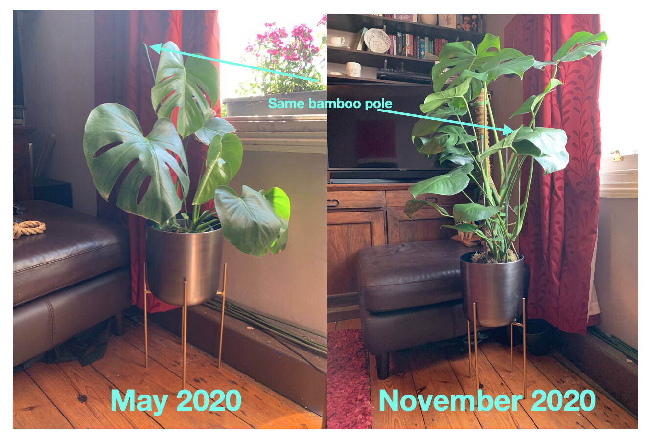 I found a picture from May this year of my Monstera just before I repotted him and was surprised by how much it had grown over the last six months. I bought it at @Shannonsgc about this time last year although obviously it didn’t grow much over last winter.