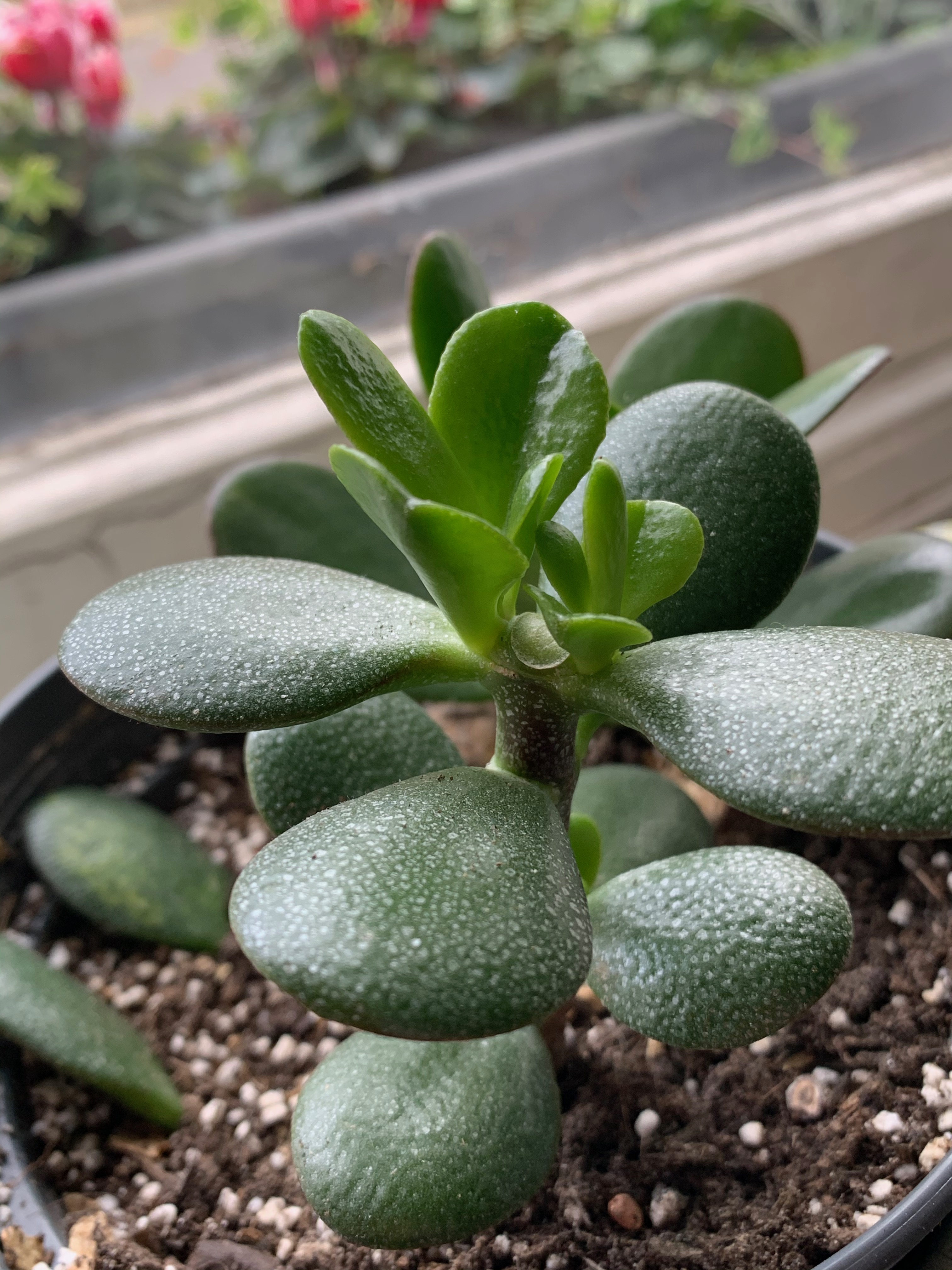 Also had another succulent whose tip got knocked off (oops) so I took some of those leaves and tried propagating… they are super tiny but two are coming through…