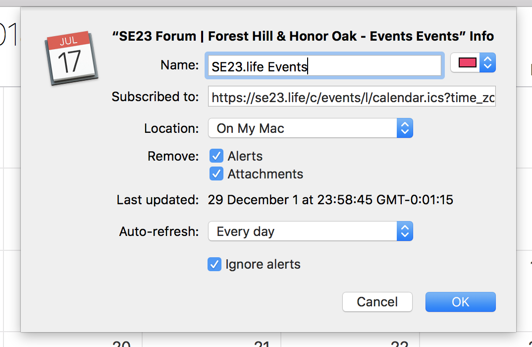 You can now subscribe to the SE23.life Calendar from the calendar app of your choice.