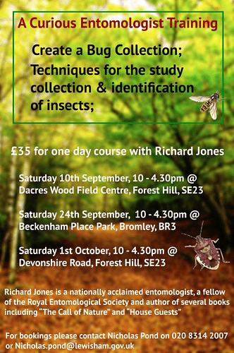 The cost is £35, and to book a place, call LB Lewisham Ecology officer Nick Pond on 020 8314 2007, where he will be able to take a card payment . Alternatively, email him on Nicholas.Pond@lewisham.gov.uk or use the form on this link