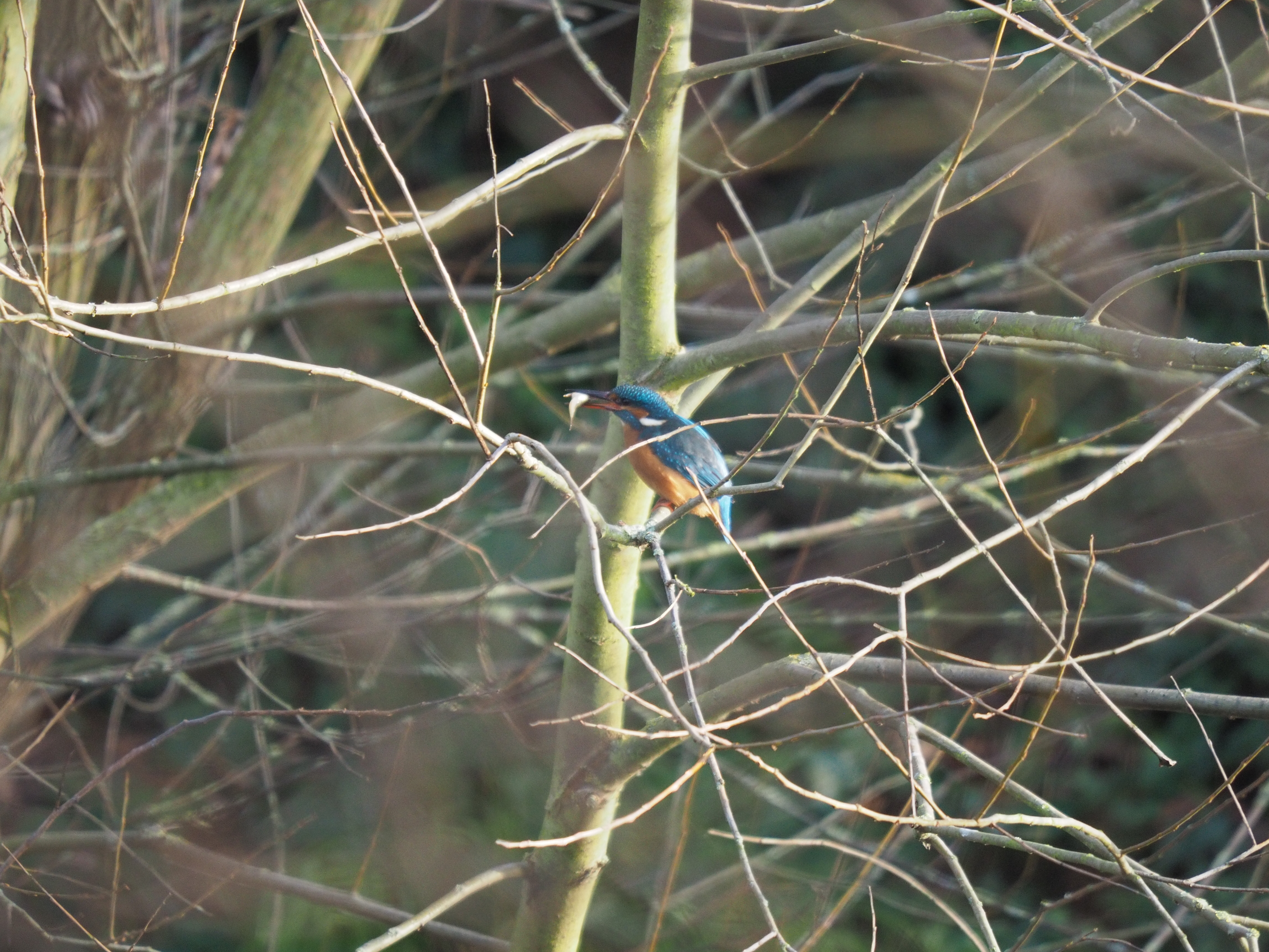 I think I was lucky, but within 5 minutes I’d spotted a Kingfisher. It seemed unperturbed by my presence and I watched it for 5 or so minutes until it dived down to catch a fish before flying off.