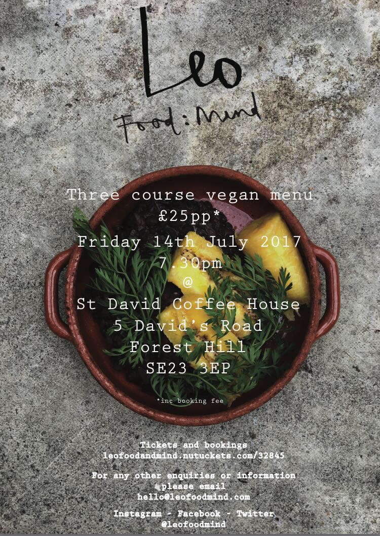 This Friday Leo invites you to attend their last pop up the summer at St David Coffee House, which will include a menu of three vegan courses. Expect a sociable evening with good freinds, good people and good vibes!