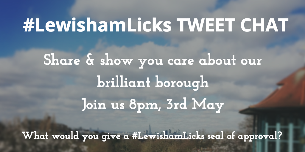 Hi! I am launching a Lewisham Twitter chat on Wednesday 3rd May, at 8–9pm and would love for as many locals to get involved as possible. I feel Lewisham is missing this forum at the moment.