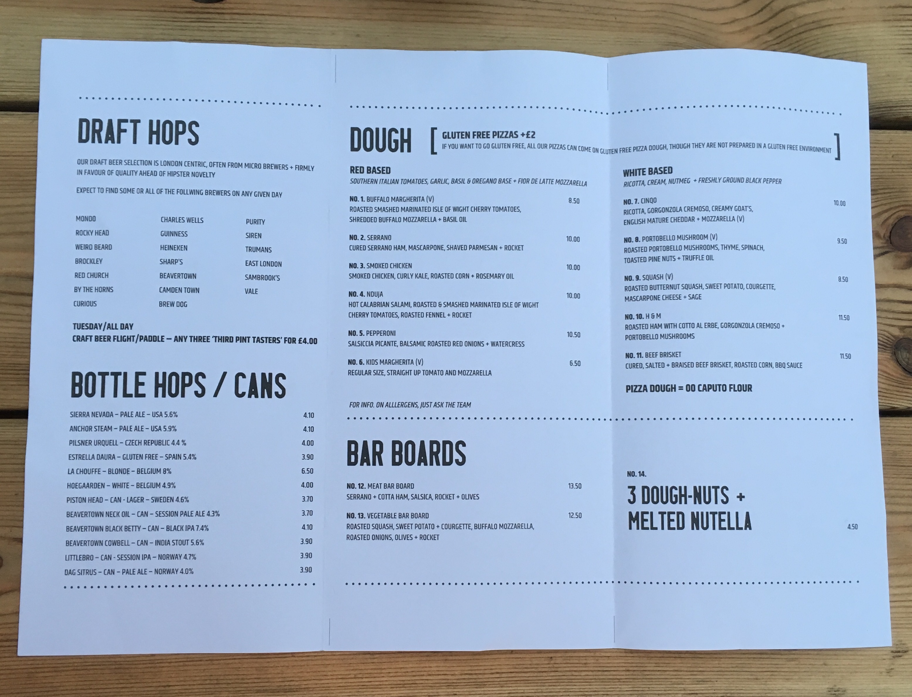 Pizzas were great. About the same standard as BOnA, I’d say - not sourdough, and not super-crispy. Great range of toppings. Beer selection excellent - lots of craft beer on tap and a promising rotation - see menu.