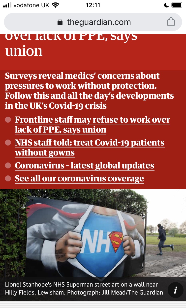 @Lionel in case you didn’t know, they keep featuring your great NHS mural on the Guardian live feed Looking forward to seeing more of your work in the local area.