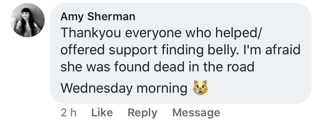 Sorry to hear about Belly. I’ve shared on our social channels: