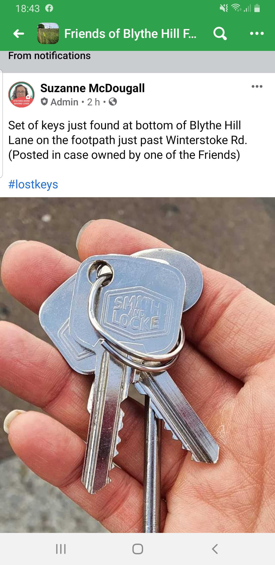 Don’t suppose anyone has found a set of house keys in or around Blythe hill this morning!?
