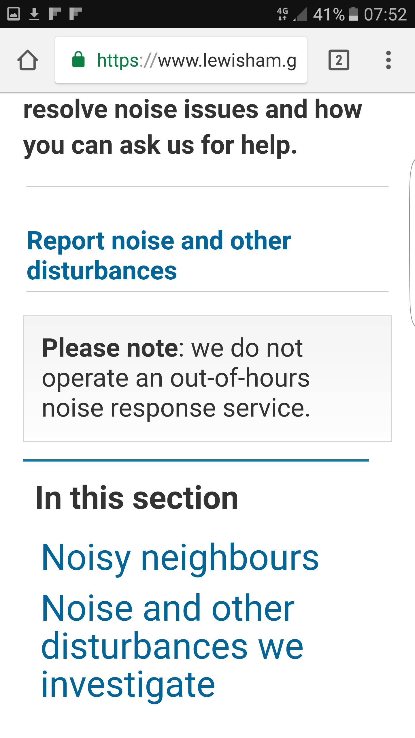 ‘you contact Lewisham main switchboard 0208-314-6000 and speak with the out of hours call Centre who should be able to get hold of an Environmental Health Officer.’