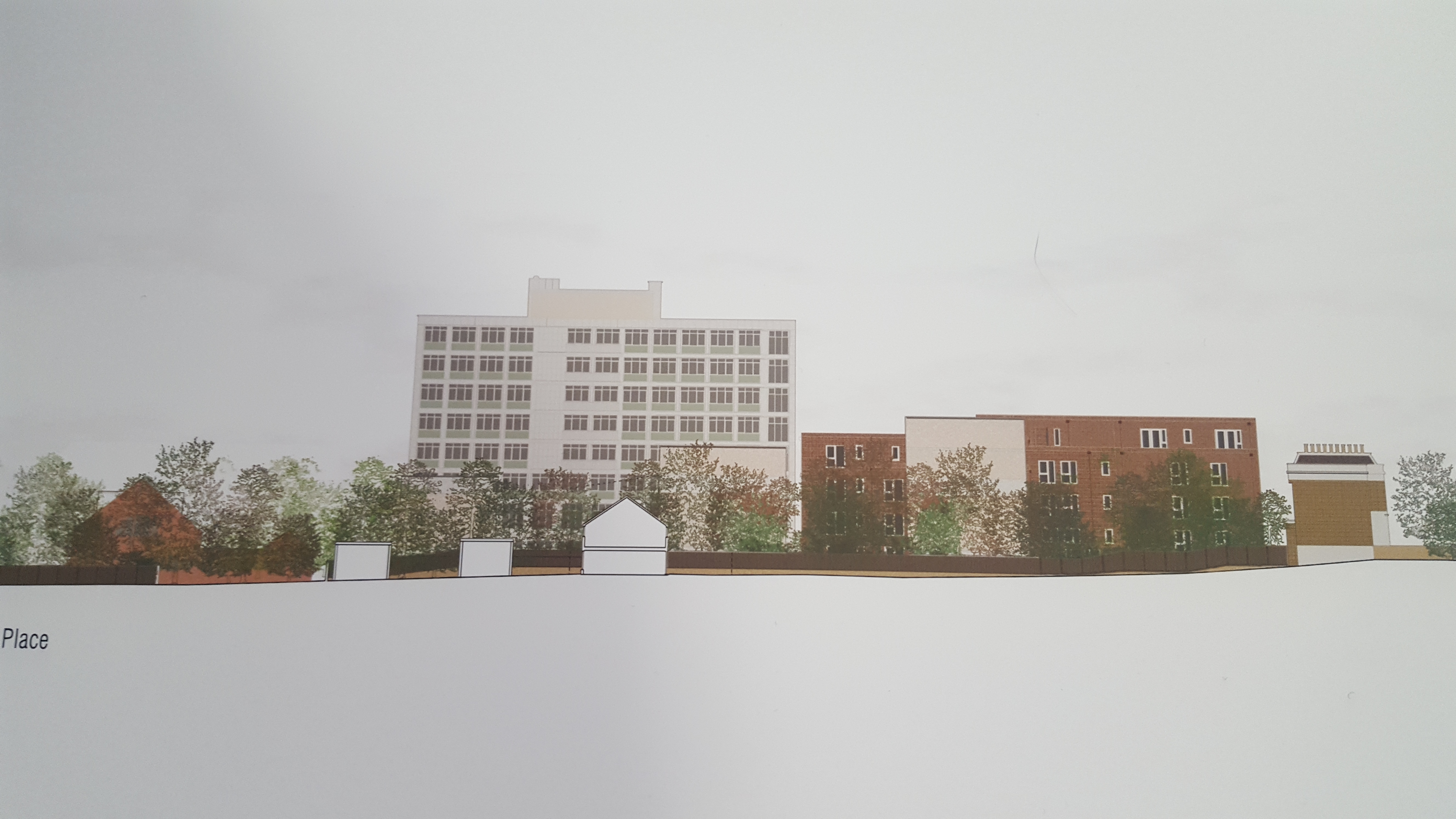 The new buildings range from 3 to 5 floors and are in line with the replacement for the police station, despite being closer to 2 storey houses.