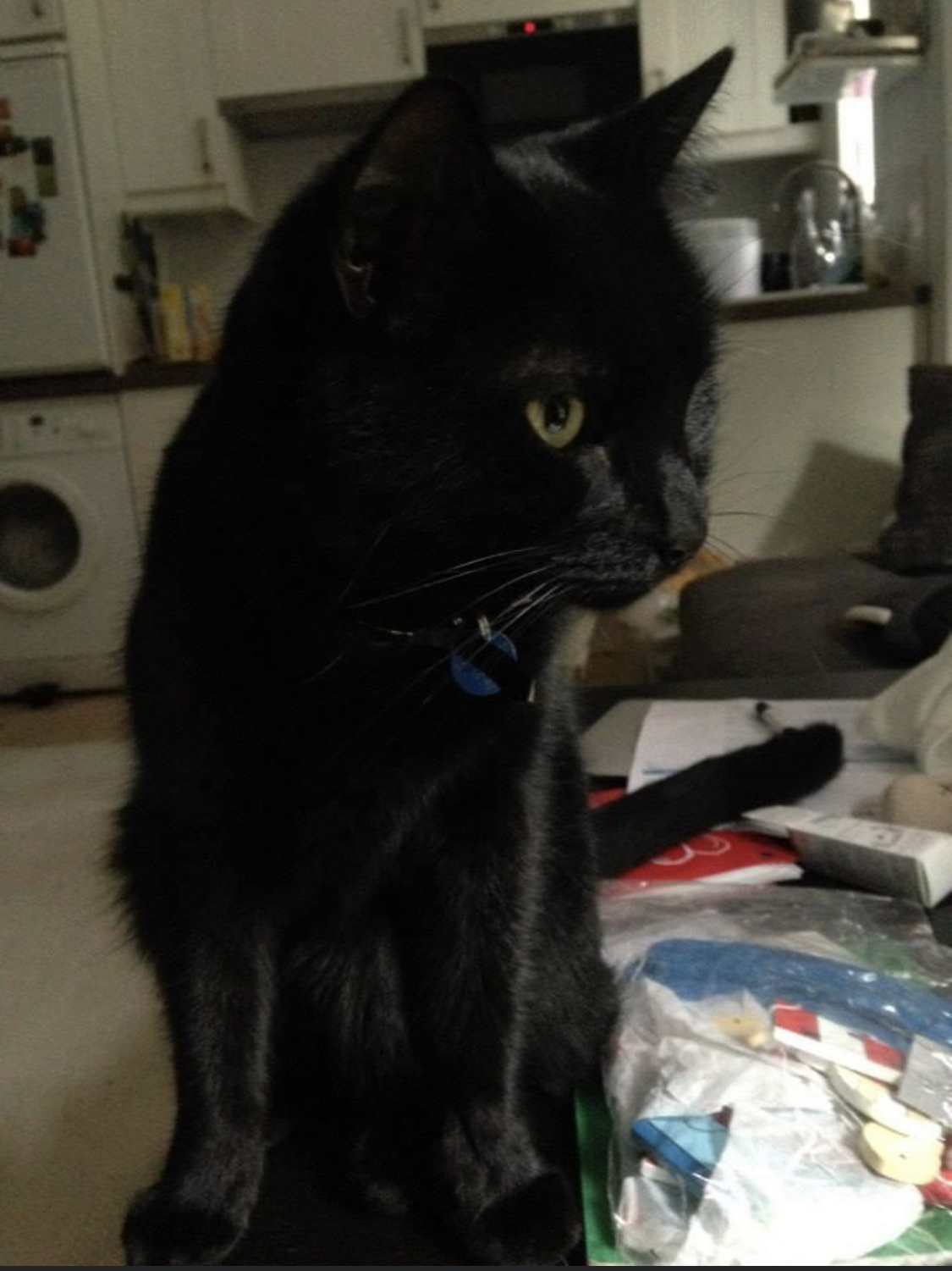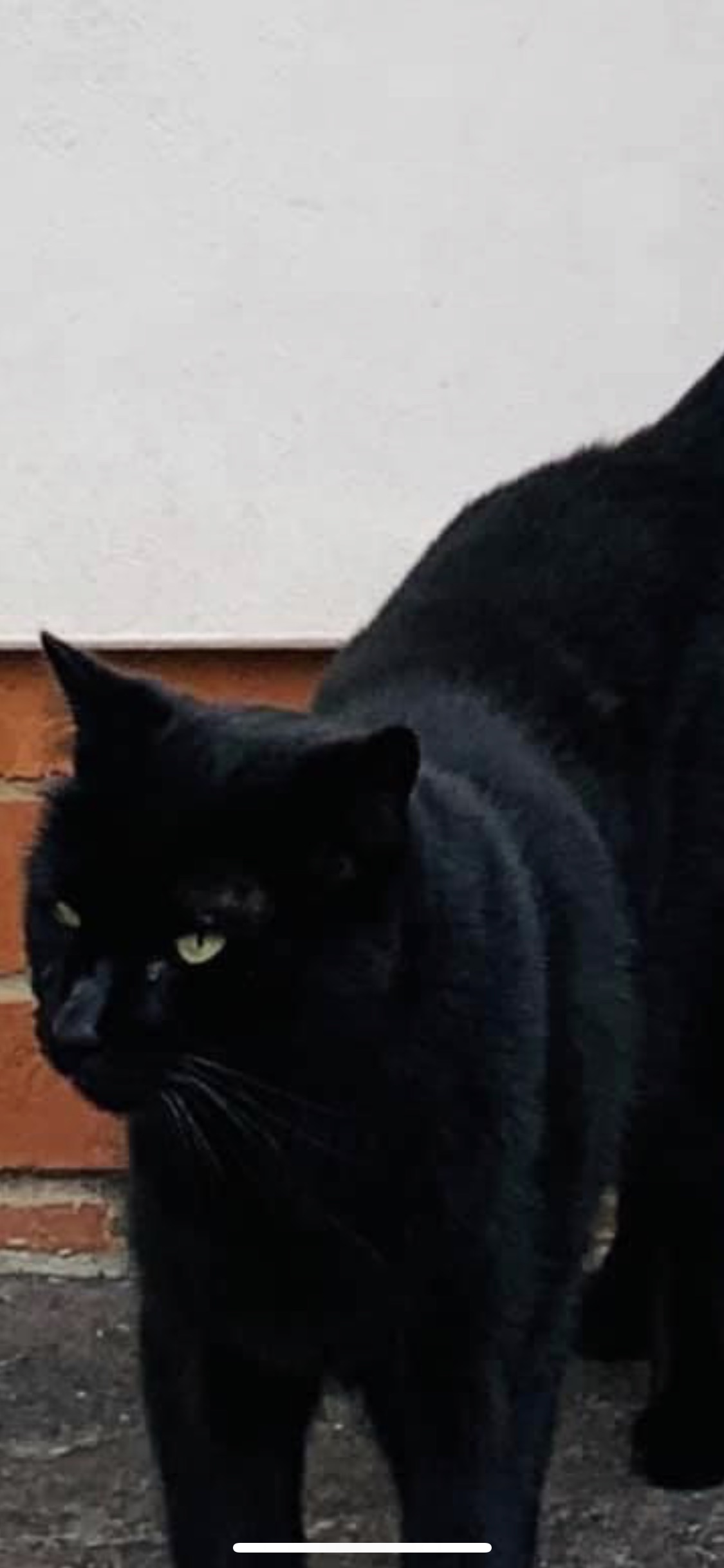 His name is Bobby, he is all black and has a little scuff mark on one side of his nose and another on his nose as you can just see on this photos. If anyone sees him, please try and take him inside and I’ll come and get him.