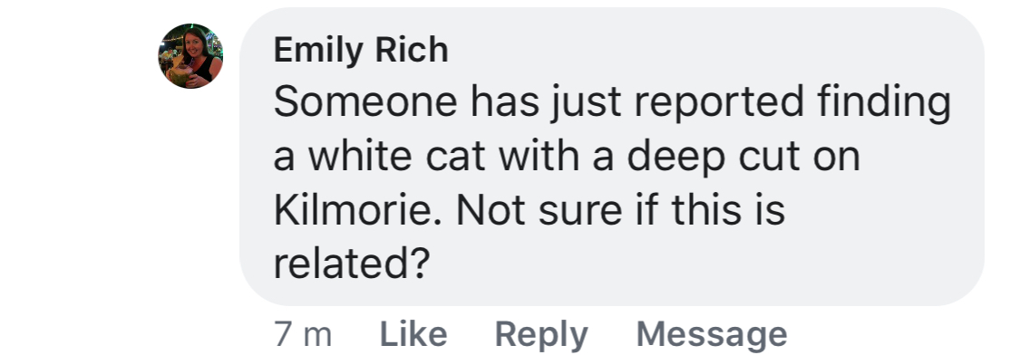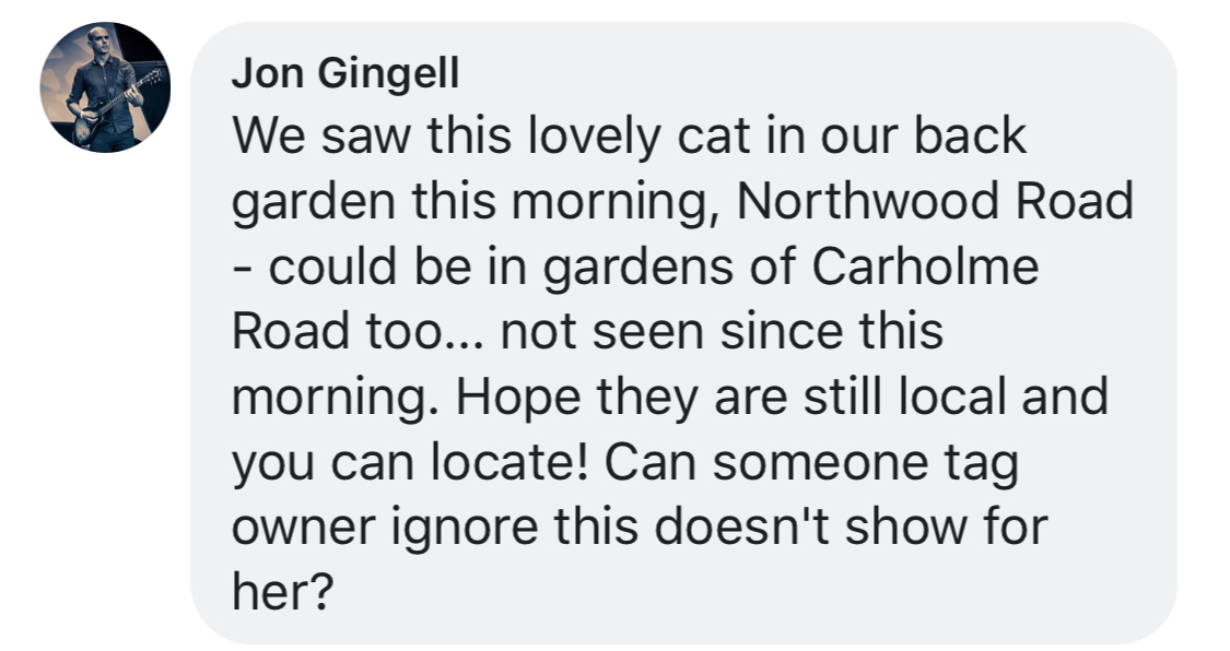 Thank you everyone for keeping your eyes peeled and for your help publicising the fact he was missing. Unfortunately we found his body a couple of hours ago so it’s all over now.