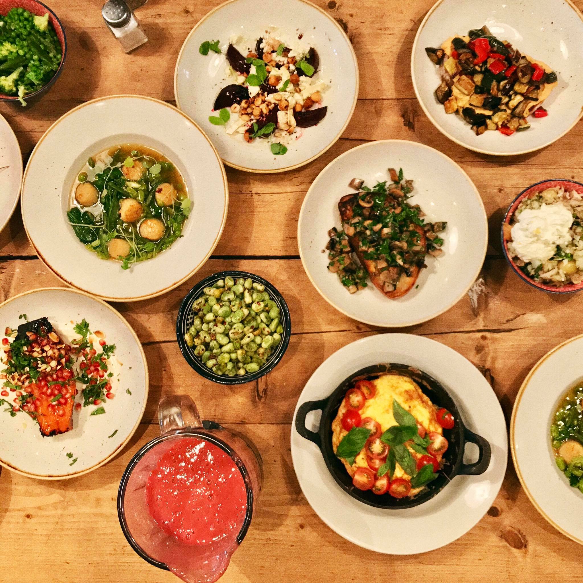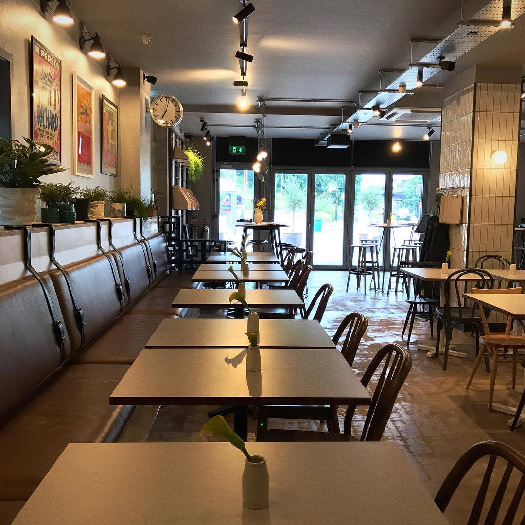 I like Parlez. Outside seating, open kitchen, tasteful decor. Feels quite spacious. Also,