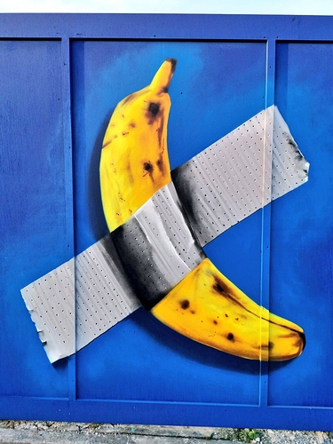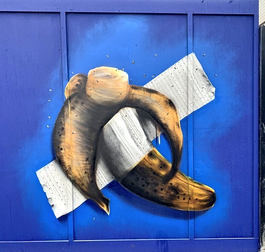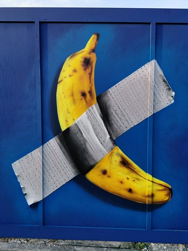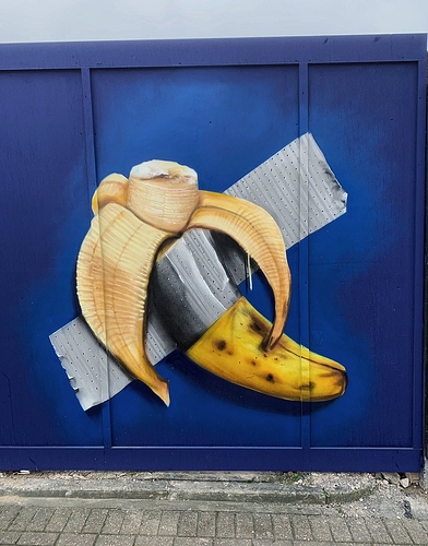 The banana has now been replaced with a couple of bin bags - quite an amazing evolution over the last few weeks. Though given I seem to remember you weren’t the biggest fan of the bin bags on the hoarding around the corner, I wondered if you might have been being trolled!
